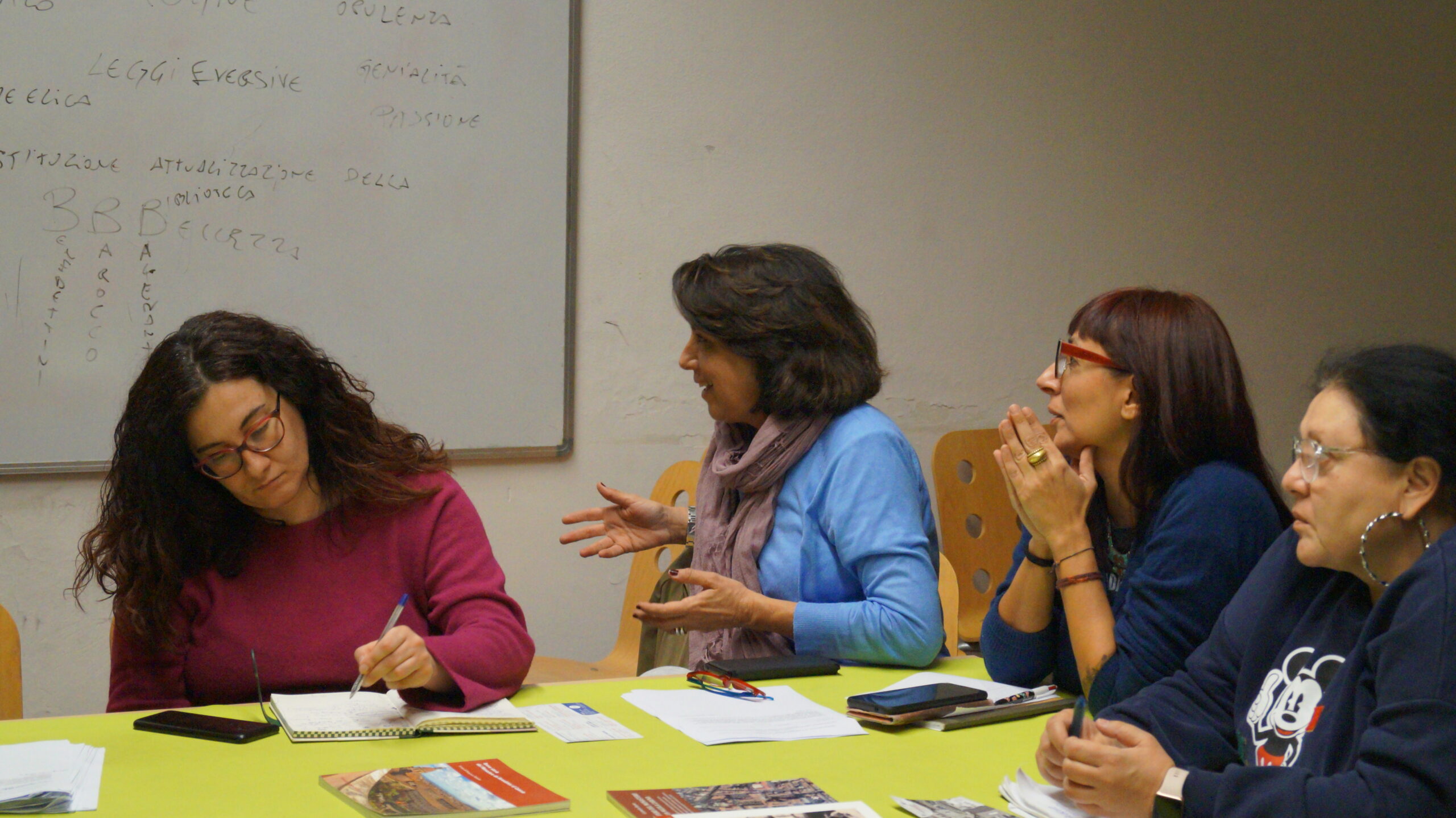 Durante il primo incontro Daniela Capra (Officine Culturali) ha accompagnato i partecipanti e le partecipanti alla scoperta soprattutto dei luoghi simbolo del recupero contemporaneo, come il Ponte Manica, la biblioteca universitaria “G. Giarrizzo”, la Scala Elicoidale, il Giardino dei Novizi e la Sala Rossa “A. Leonardi”. Con taccuini alla mano, occhi attenti e creatività in fermento, i partecipanti e le partecipanti al laboratorio hanno iniziato fin da subito a raccogliere spunti e idee grazie alla «congiura di sentimenti architettonici» che caratterizza il monastero. Visitare l’Archivio del Museo della Fabbrica e leggere alcune preziose testimonianze come La gentilezza e la rabbia. 105 lettere di Giancarlo De Carlo [a cura di Antonino Leonardi e Claudia Cantale, Editoriale Agorà] ha permesso loro di immergersi, grazie anche all’aiuto di Nicola Caruso (Officine Culturali), nelle storie e nelle narrazioni di chi, di questo recupero, è stato protagonista e ha dedicato buona parte della sua vita.